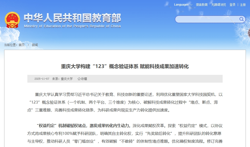 跨区域协同:川渝携手打通成果转化“最后一公里”11月12日,在绵阳举办的成渝绵中试生态会上,重庆大学概念验证中心与四川省中试研发有限公司正式签约,这标志着该中心正式加入四川省“1+N”中试研发平台体系,成为该体系首个省外合作的高校成果转化平台。这一跨区域合作,是川渝两地科技成果转化生态协同的重要举措,旨在打通科技成果从实验室走向市场的“最后一公里”。四川省“1+N”中试研发平台体系,是为加速科技成果转...