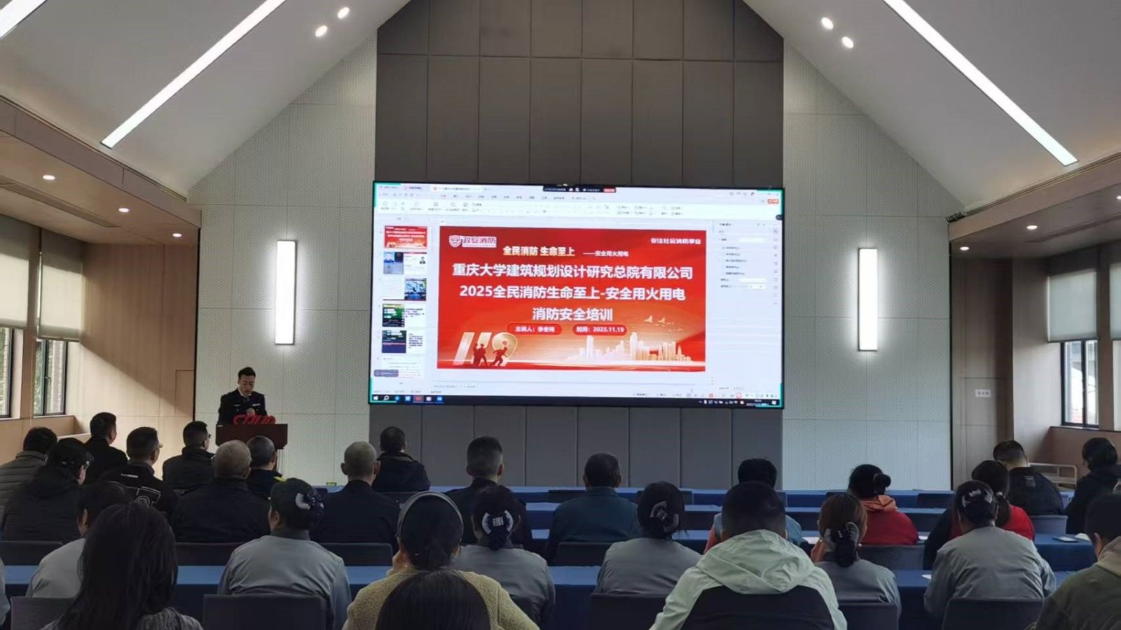 设计总院公司采用线上线下结合的方式组织开展了以“全民消防、生命至上——安全用火用电”为主题的消防安全培训。11月19日,培训围绕“理论+实操+演练”三位一体模式展开,分为四个阶段有序推进,包括观看消防安全警示视频、开展消防理论知识讲解、组织疏散逃生演练及进行消防器材实操。11月20日,设计总院公司组织开展“119消防安全月”园区安全大检查。检查组深入园区监控室、施工现场、各门岗及消防设施重点区域,全面排查安全隐患,切实筑牢园区安全防线。